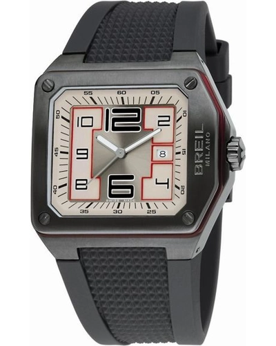 Stainless steel case with Breil Milano engraved logo and red plexiglass insert