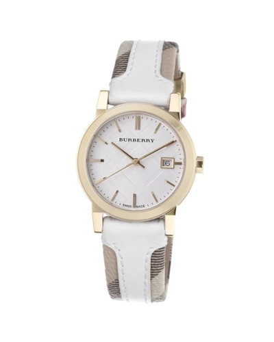 Burberry Women's BU9110 Large Check Leather Strip On Fabric Watch
