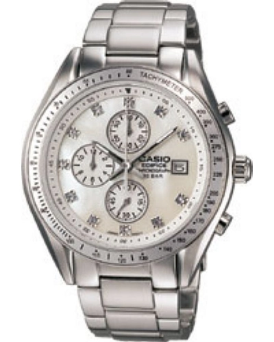 Casio Collection: EDIFICE Chronograph Series October 2007 Model Watch # EF-503SPP-7AV (Men' s Watch). Accuracy per month: ±20 sec. Battery Life: 2 YRS. Date display. Size of case / total weight: SHN-6002D 46.5 x 41.4 x 10.4 mm / 135 g. Model Number: EF-503SPP-7 EF-503SPP EF503SPP EF503SPP7 EF-503SPP 7AV. Case: Stainless steel. Battery Type: SR927W. 1-second stopwatch. Regular timekeeping. Dial Color: Mother Of Pearl.  EF-503SPP-7AV