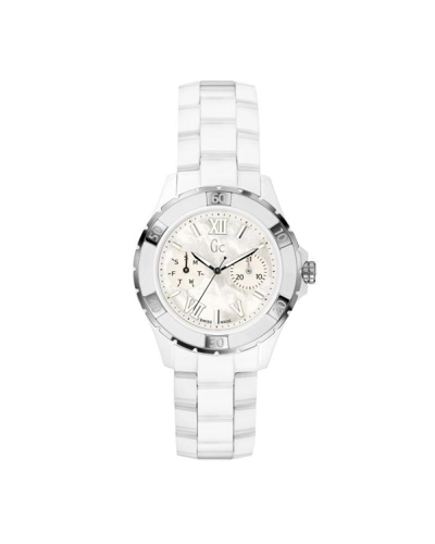 This pretty ladies Gc Sport Class XL-S Glam watch has a stainless steel case and is fitted with an analogue quartz movement. It fastens a white ceramic strap and has a mother of pearl dial. The watch also has a date function.