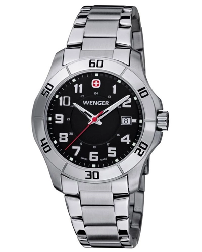 he Wenger Alpine Gents Watch 70487 is a smart stainless steel watch with a black dial which tells the time with military precision and boasts water resistance that ensures your watch is protected in all weathers.