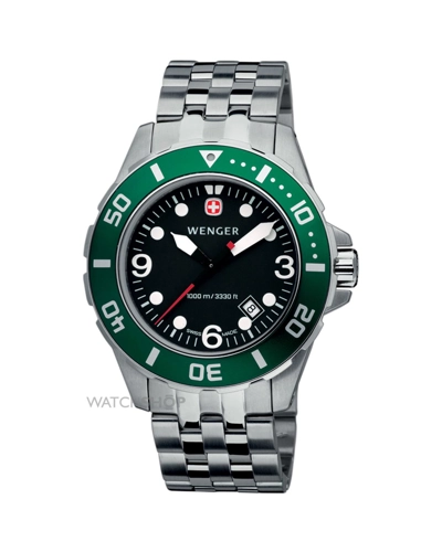 Wenger 72227 Mens Aquagraph Green Bevel Large Pro Divers Watch