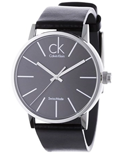 Black leather with stainless steel is a marriage made in heaven as this CK watch shows. Clean, crisp lines and understatement are all what this Swiss made watch is about