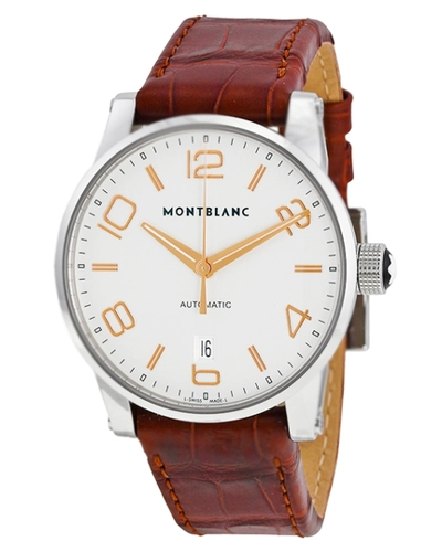 Montblanc Timewalker Automatic Silver Dial Leather Mens Watch 105813