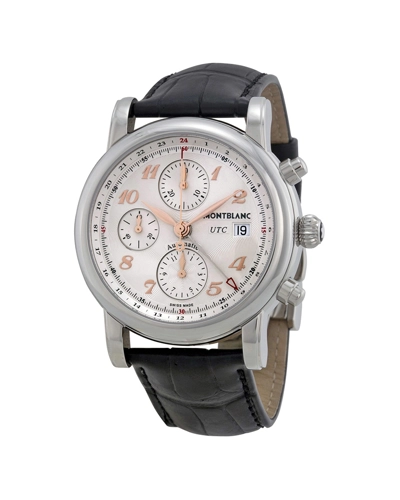 Montblanc Star Chronograph UTC Silver Dial Leather Mens Watch 110590
