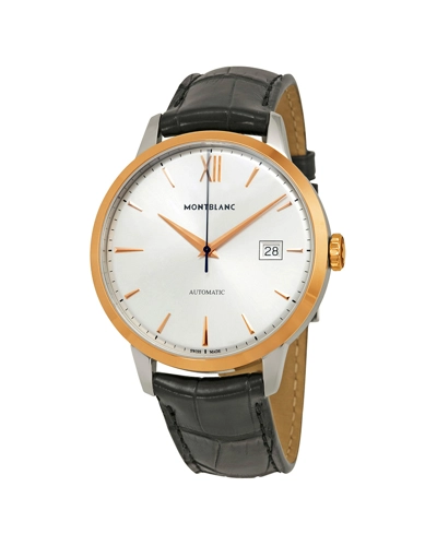 Montblanc Automatic Silver Dial Black Leather Mens Watch 111624
