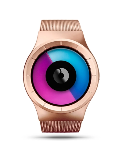 | Strap | Matte chrome stainless steel mesh, tapered from 23 mm to 21 mm |