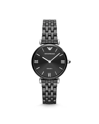 Armani Women's Retro AR1487 Black Ceramic Watch with Silver Dial