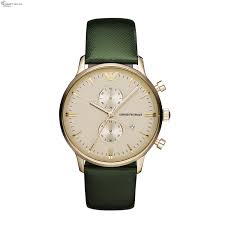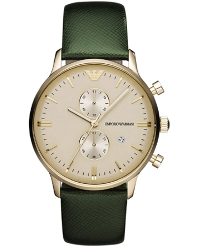 Emporio Armani AR1722 Gold & Green Textured Leather Mens Watch