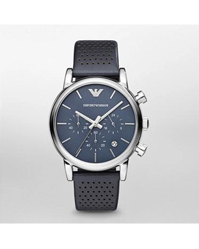 Emporio Armani AR1736 Gents Blue Face Leather Strap Watch