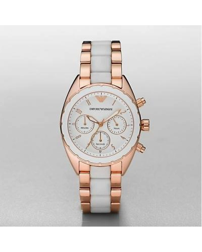 Emporio Armani AR5942 Women Rose Gold White Sportivo Watch
