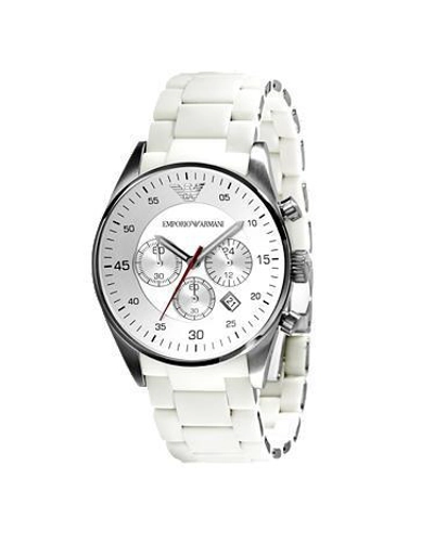 Emporio Armani Mens White Sport Chrono Watch AR5859