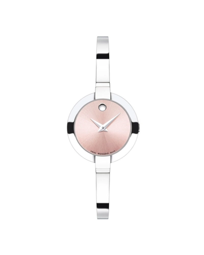 Movado Bela Pink Dial Stainless Steel Bangle Ladies Watch 0606596